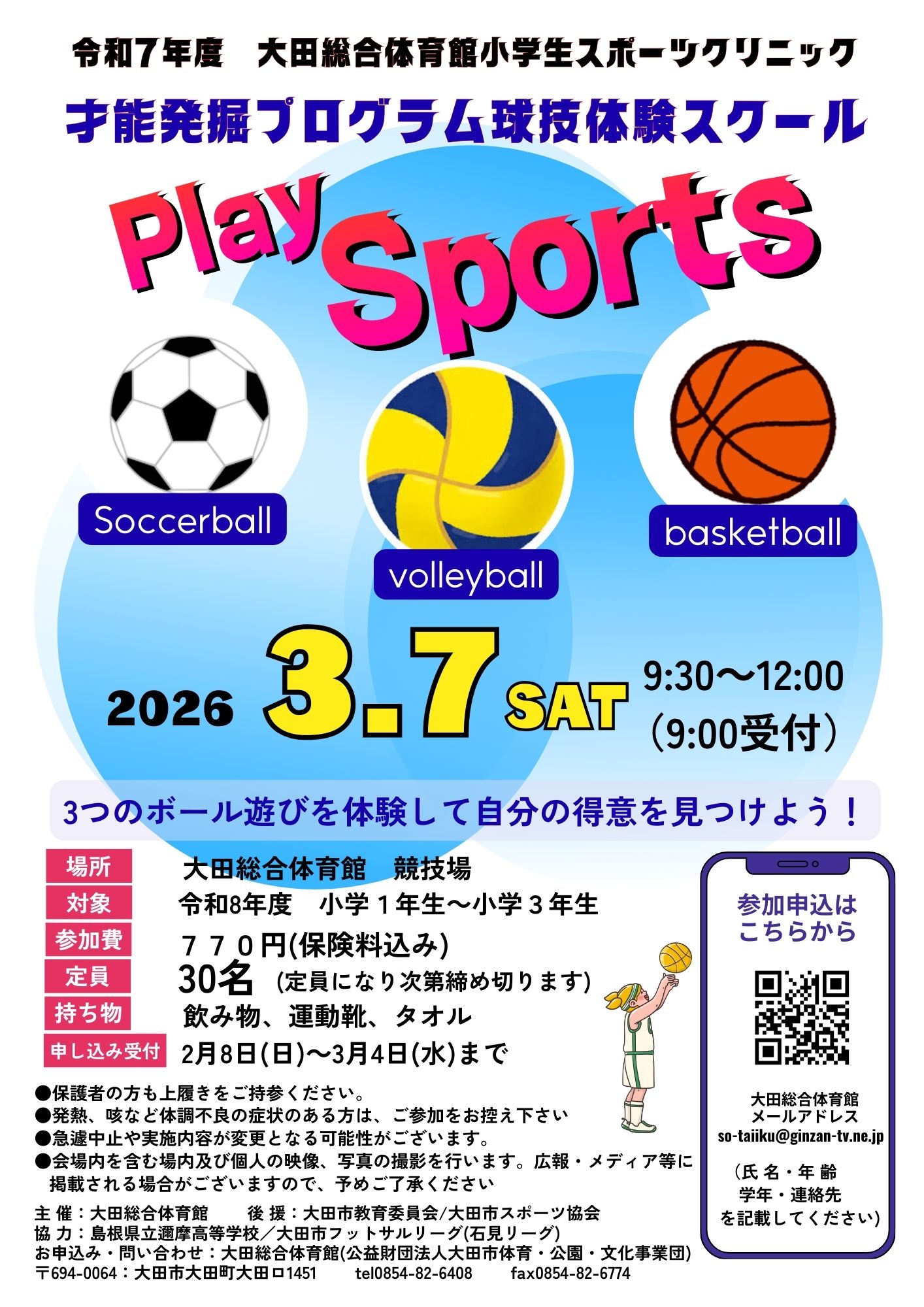 2026.1.29 令和7年度大田総合体育館レッツトライ冬のスポーツ体験フェスティバルを下記のとおり開催いたします。詳しくは
