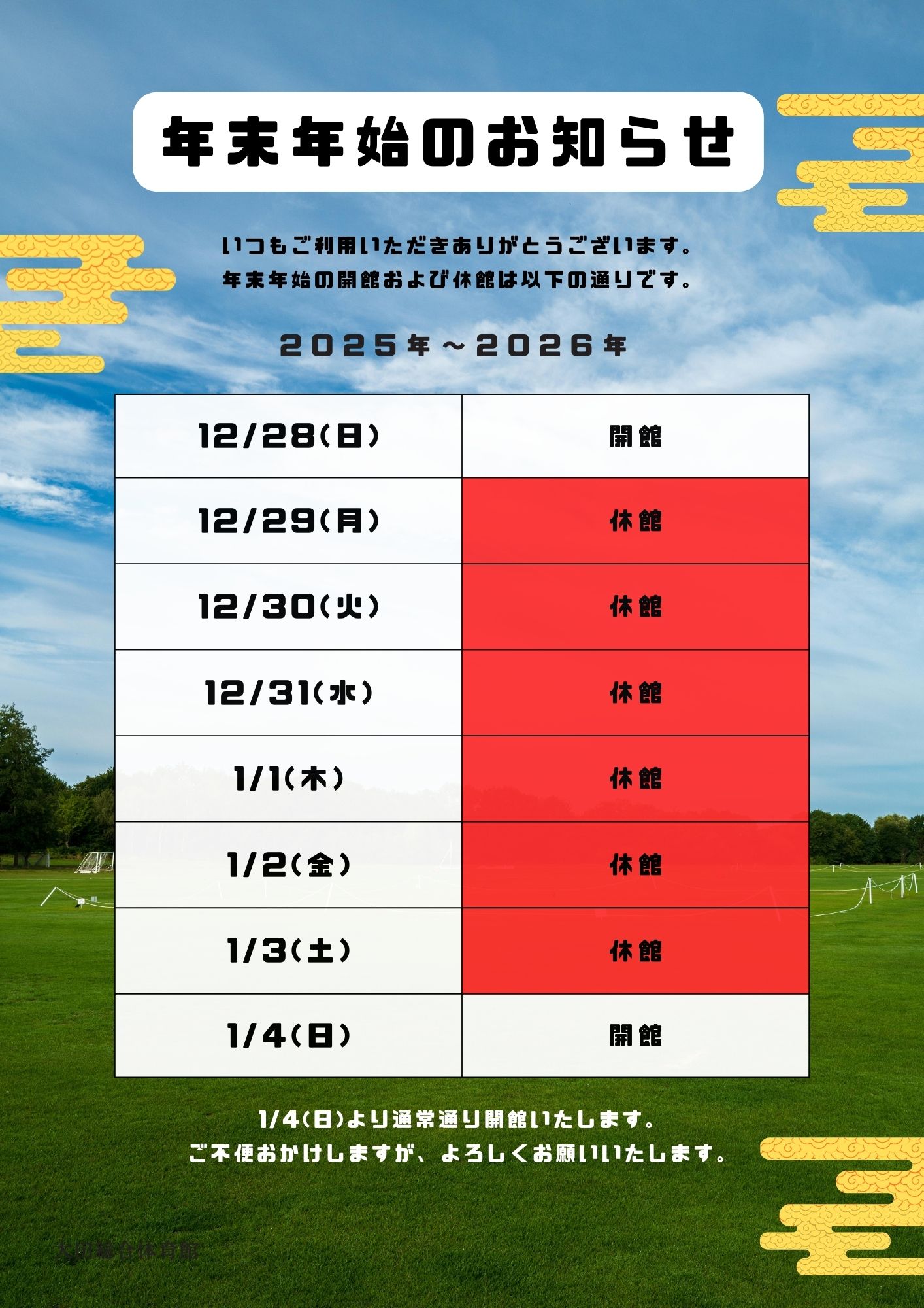 2025.12.11 年末年始の休館日は下記のとおりとなります。