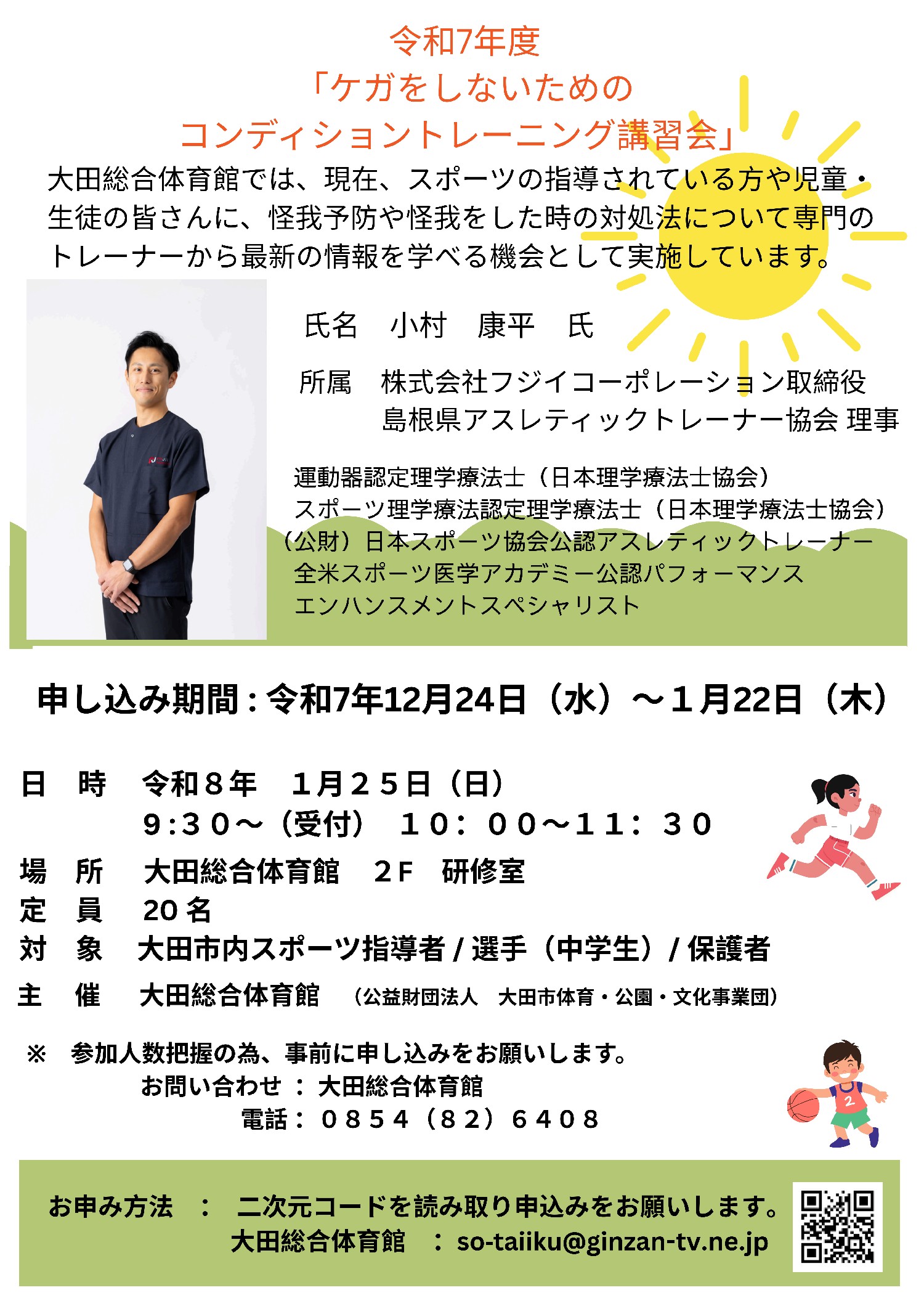2025.12.27 令和7年度「ケガをしないためのコンディショントレーニング講習会」を下記のとおり実施いたします。詳しくは