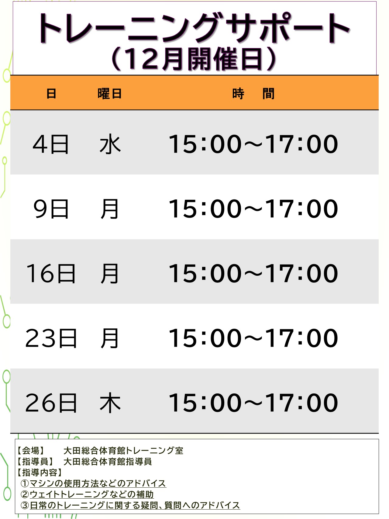 2025.12.1 トレーニングサポート事業をかきのとおり実施いたします。